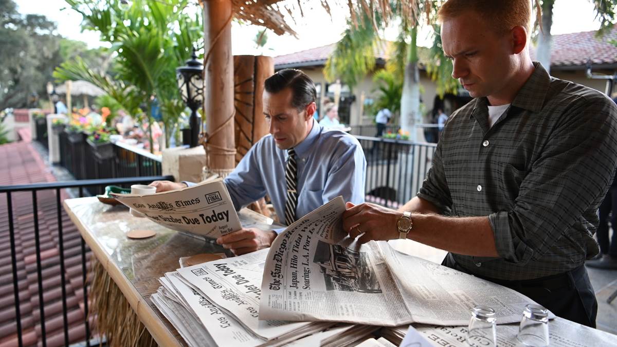 The astronauts are on another tour to shore up support for the program and to speak at a convention at the Kona Kai hotel. The thought of entering another ballroom and talking to a large crowd fills the Mercury Seven with dread and they take a few minutes to relax on the beach and have a drink. John Glenn (Patrick J. Adams) doesn’t feel comfortable joining his fellow pilots on the beach and enters the convention hall.