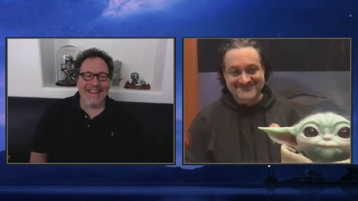 - Series producers and directors Jon Favreau and Dave Filoni appear to answer fan questions. They talk about Easter Egg references to previous Star Wars stories. Favreau loves that Star Wars can bring people together during a time when everyone is separated. He’s sad Star Wars Celebration didn’t happen this year, but he hopes the show makes up for it a little bit. Filoni talks about using the 501st in season one, and then the two filmmakers discuss what it was like bringing new directors into Star Wars for the first time. Then they discuss how they used an X-Wing from Star Wars: Galaxy’s Edge for Dave Filoni’s cameo as a New Republic pilot. Their favorite part of being on set is how everyone adds a little bit to it. “Star Wars has been around for so long that we’re sort of crowdsourcing it, in a way.”