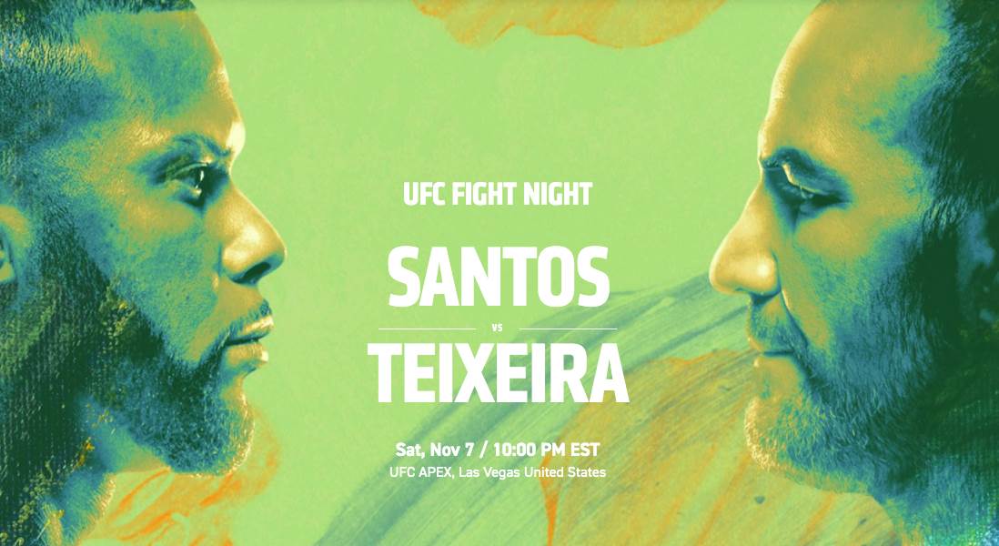 UFC Fight Night: Santos vs. Teixeira will air tomorrow night, November 7 at 10 PM ET on ESPN.