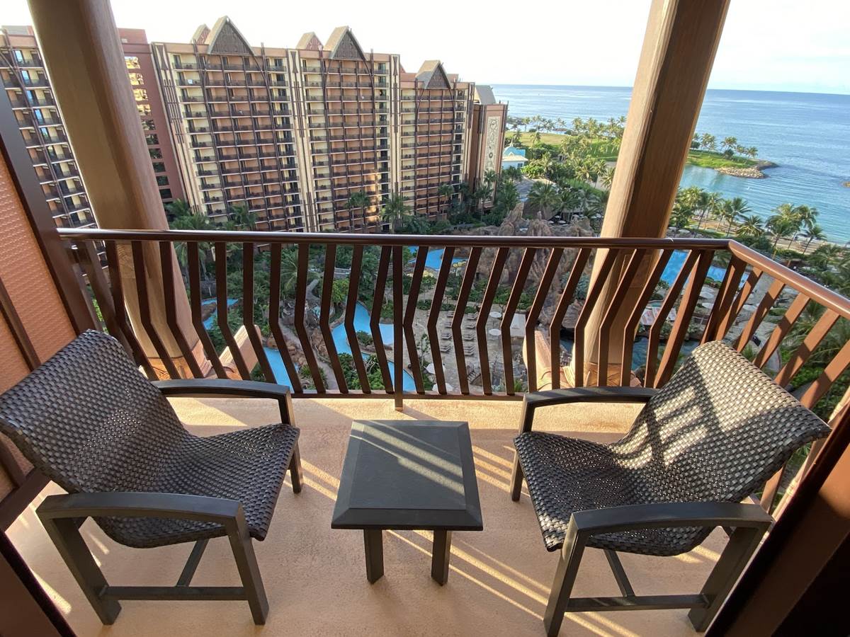 The balcony includes two chairs and a small table, the perfect place to enjoy your breakfast each morning. Springing for the ocean view was well worth it and also gave us a great birds-eye view of the entire pool area.