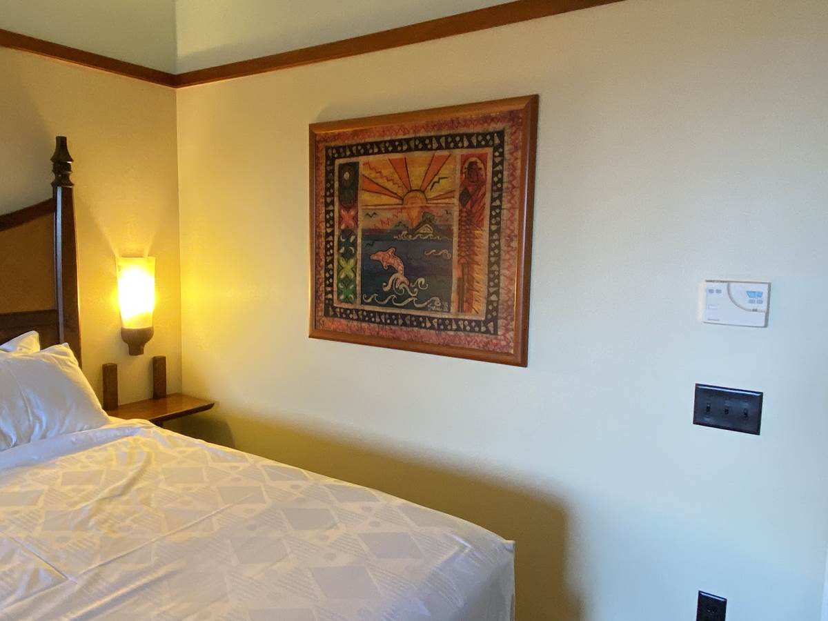 Disney rooms are famous for having a uniquely Disney touch and at Aulani, it’s a desk lamp with a wood carving of Mickey Mouse and a surfboard. If you fall in love with it, they sell it in the gift shop.