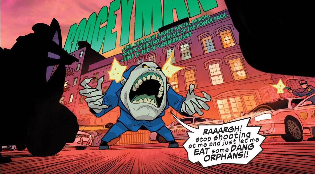 So, instead of breaking some pretty world-shattering news, the group seems content to just enjoy a family meal. But we, as comic readers, know better than that, don’t we? When they hear about one of their old enemies terrorizing an orphanage, the Power Pack decided to leap into action.