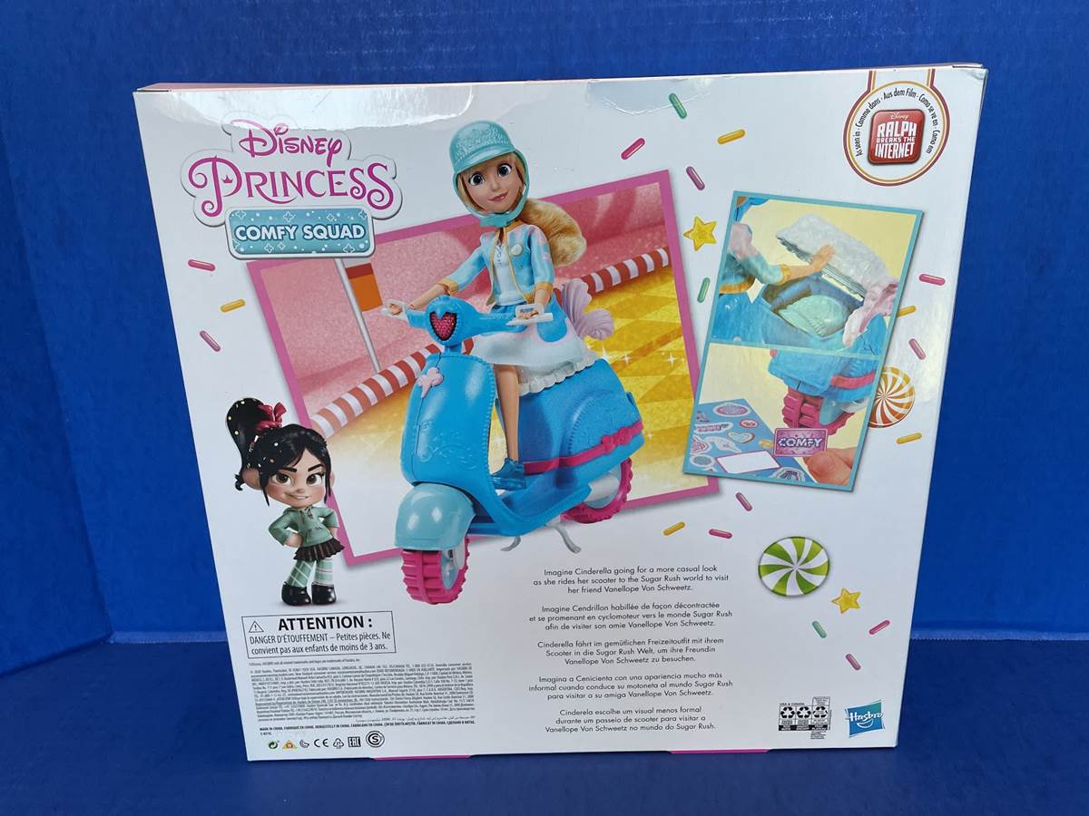 Three Disney Princess Comfy Squad fashion dolls were inside and we got Tiana, Belle and Rapunzel. This new wave of dolls come in different outfits from the ones seen in the film and Hasbro also sells separate outfits they can change into. They have lots of fun story details within each. My favorite is Tiana’s sweater dress, which features the frog prince from the children’s book she and Charlotte read as kids in The Princess and the Frog. Her purple leggings also have glittery golden crowns on them. Each of these dolls retails for $12.99 and other characters in the line include Jasmine, Cinderella, Ariel and Aurora. You can also get the entire first wave of dolls in their looks from Ralph Breaks the Internet in an Amazon exclusive box set.