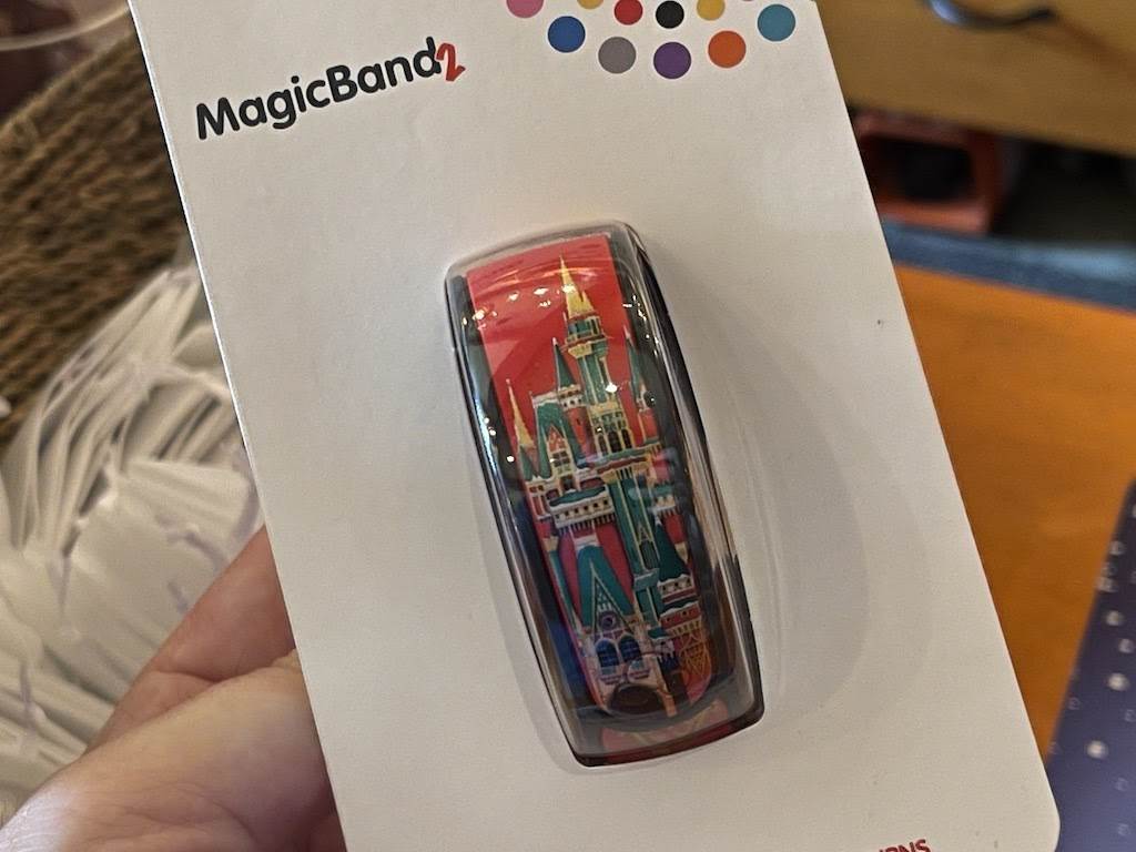 Bring some festive style to your next Disney Parks trip with the Passholder Exclusive holiday MagicBand. The castle is set against a bold red background and is shining with gold and green turrets, and red and green towers. A layer of snow has even collected on some of the balconies!