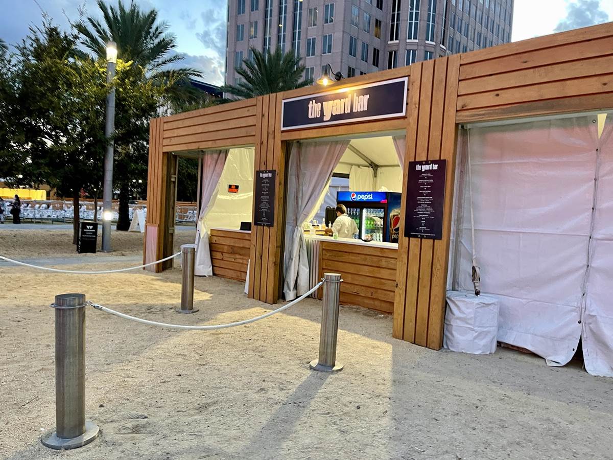 Tickets are $5 to $10 each (depending on viewing area), and there is a two-ticket minimum for each pod seating area with a maximum of 5 guests per pod. Each pod has its own QR code to order food and drinks from one of the vendors. Offerings range from drinks, pizza, and gourmet grilled cheese that can be ordered from your phone and delivered to you.