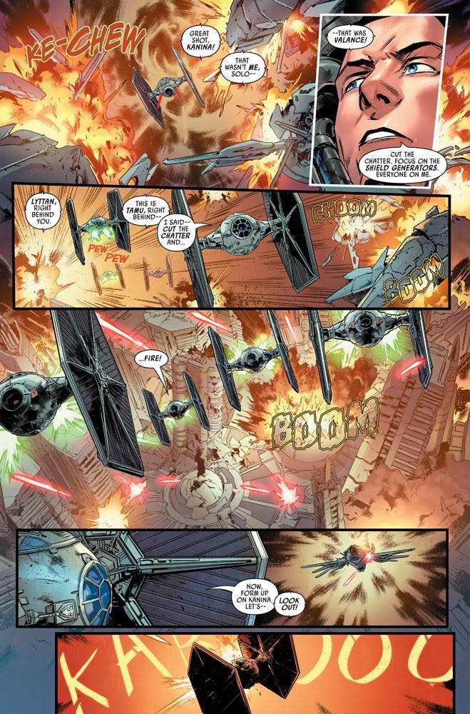Back in the “present” of the comic (the period between the events of The Empire Strikes Back and Return of the Jedi), Valance pays a visit to a seedy nightclub on Nar Kaaga in Hutt Space, where he meets up with-- then gets promptly double-crossed by-- a cyborg contact named Syphacc, who sics an up-and-coming assassin called Tasu Leech on him. Naturally, as is this series’ M.O., a fight breaks out between Valance and his would-be murderer until our protagonist once again wins out and escapes to flee to his next location. Back in the Broken Wing, Beilert gets a call from Kondra, the Rebel Alliance soldier who helped him out in previous issues, asking for repayment in the way of rescuing some rebel troops whose transport got stranded in pirate territory thanks to a hyperdrive malfunction.