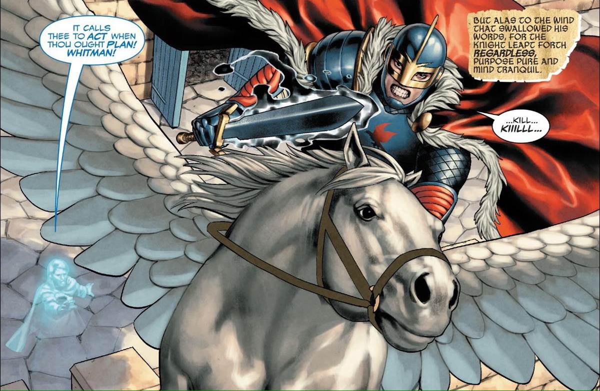 So, if Whitman is going to join th fight, he’s going to need some sort of positive influence. Luckily, the right hero steps up to the plate and might just be the right person to start turning this fight around. But can the Black Knight pull it all together to become a serious threat to Knull’s power?