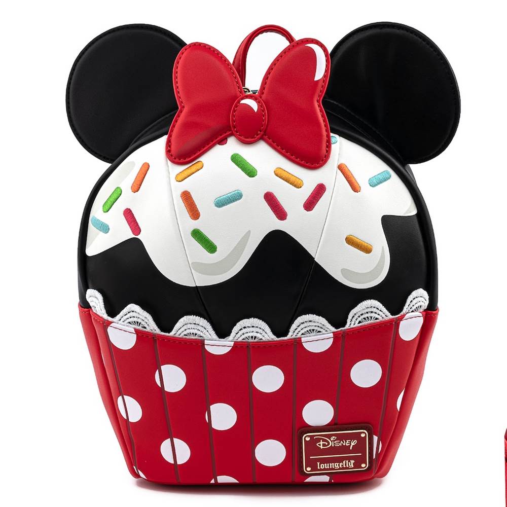 If you thought the ice cream look was fun, then you’ll love the cupcake mini backpack! A polka-dotted Minnie Mouse cupcake liner covers the bottom of the bag, while the upper half is the cupcake covered with frosting and sprinkles. To complete the look is Minnie’s signature red bow. This design is limited edition and exclusive to Loungefly.