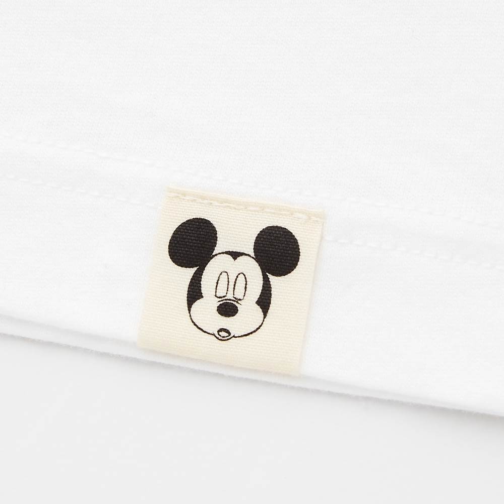 Each shirt includes a tag at the hem with a sleeping Mickey icon on one side and Mickey heart hands on the other. The shirts sell for $19.90 and are available in sizes XXS-3XL.