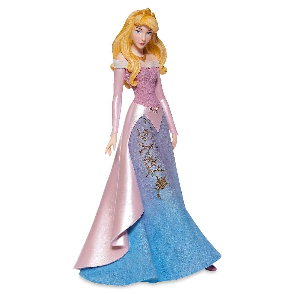 “‘Make it pink! Make it blue!’ Princess Aurora from Sleeping Beauty showcases her magical two-tone couture with velvet and satin finishes and metallic gold accents. Part of the Disney Couture de Force collection from Enesco.”