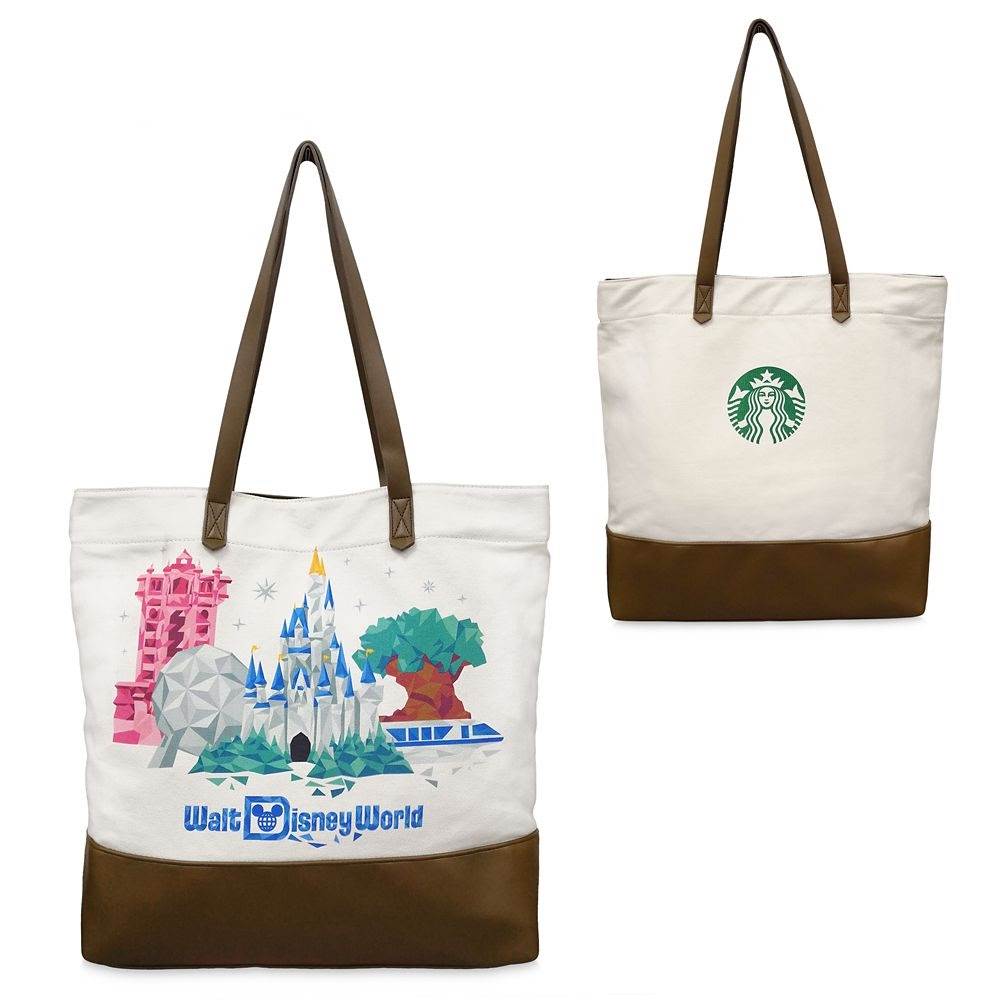 Whether planning for a day at the park or just following your daily routine, you can’t go wrong carrying your essentials in a trendy Disney tote. The top ¾ is a cream canvas fabric decorated with the Starbucks logo on one side and park icons on the other. The bottom ¼ is made of faux leather material for a study and stylish finish.