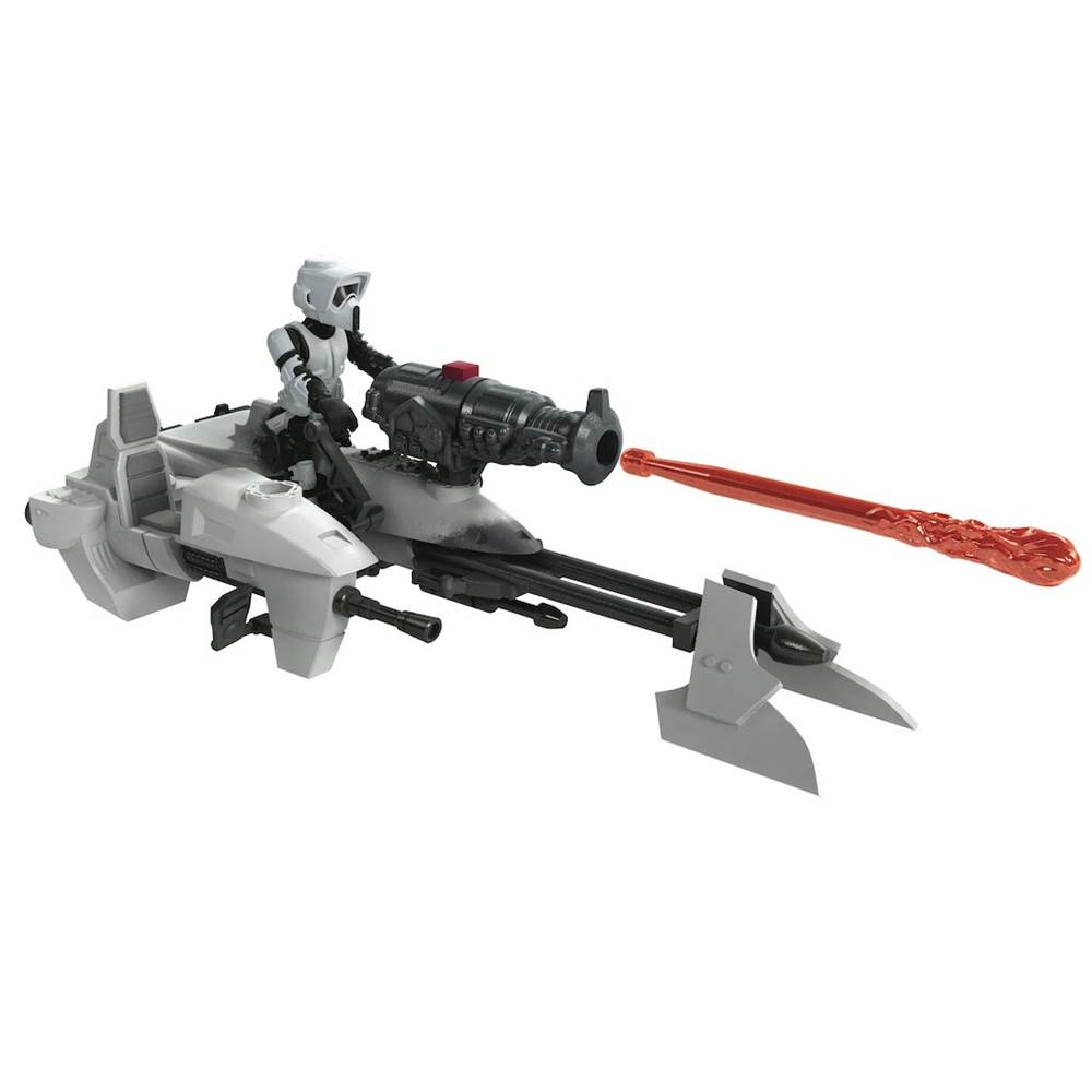 - Features the Kuiil Blurrg Battle Charge Figure and Vehicle and the Biker Scout Speeder Bike Spring Figure and Vehicle.