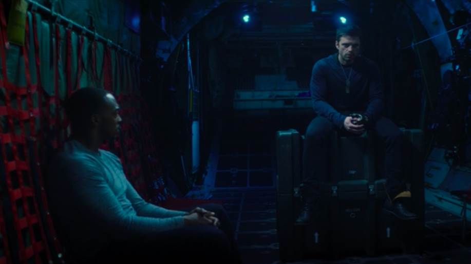 Back on their plane, Bucky tells Sam they should take the shield and do this themselves. Sam reminds him of what happened the last time they stole the shield, brining up Sharon Carter, a character we know will be showing up in this series. He tell Bucky they have nothing to work off of and Bucky tells him that’s no entirely true.