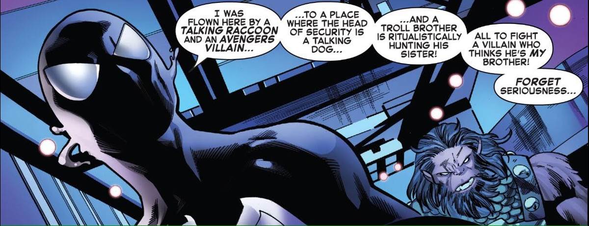 All of that has added up to one of Peter Parker’s strangest adventures. And that’s saying a lot for a guy who is wearing a suit that is literally made out of an alien being. So when Parker sums up everything we’ve seen in this series to this point, it sounds even more ridiculous than we realized. Hence him ending with that great “forget seriousness” line.