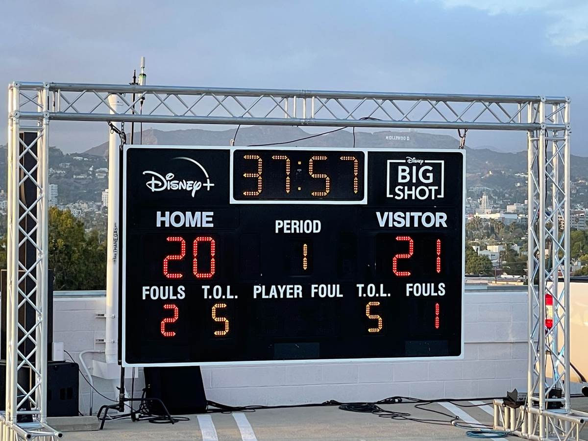 Disney themed the top floor of The Grove’s parking garage, adding Disney+ and Big Shot themed photo opportunities. Servers were dressed as referees and talented basketball players entertained the audience while we waited for the sun to set. DJ Michelle Pesce brought the energy up before the show with some fun and empowering music.