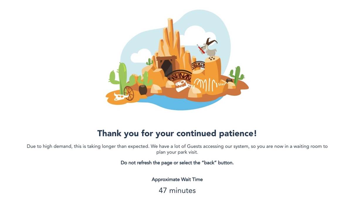 Getting to Disneyland’s Theme Park Reservation System will likely be the most time consuming part of the process, which starts with a virtual queue. From from the hours it took on the first day, visitors can now expect the wait time to be less than an hour. Be sure to keep an eye on this screen as once your time is up, you have a 10-minute window to start your ticket process before you would have to go to the back of the virtual queue and start all over again.