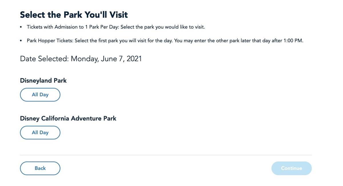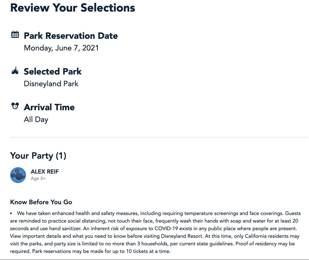 - California Residents Only: The process never asks Guests to confirm they are California residents, but at this time, only California residents are allowed to visit Disneyland. “Proof of residency required,” the website states.