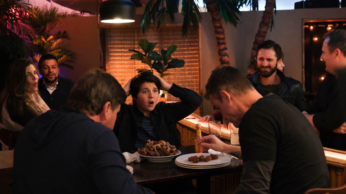 With some finessing and an offer from Gordon to chaperone, Alex allows Evan to attend his dad’s local gig at a bar. Gordon and Rob start to show the glimmers of a possible bromance, as they connect over their shared tour bus days and unlimited chicken wings. Just bros being bros!