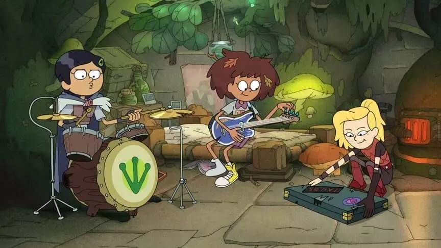 Back at the Plantars, the girls are trying to figure out what to play for the contest, with Sasha suggesting her song “Heartstomper,” while Anne suggests a new song she wrote about her experience in Amphibia, “No Big Deal,” which even has a guitar solo for Sasha.