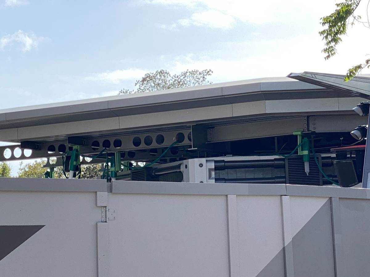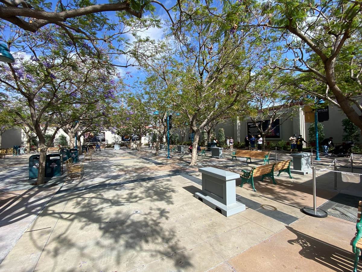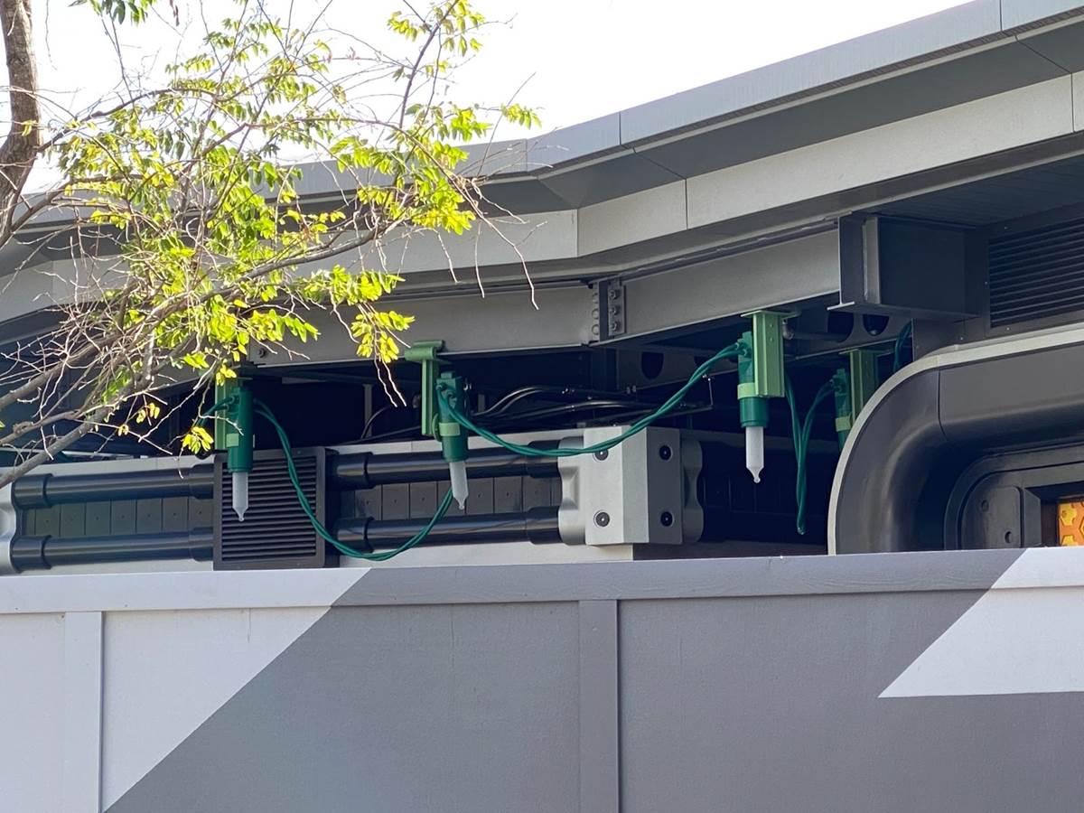 The most notable update from our look around the yet-to-open Avengers Campus is the outdoor dining area for the Pym Test Kitchen. This dining area is located in the courtyard next to the Hyperion Theater and features some fun new details.