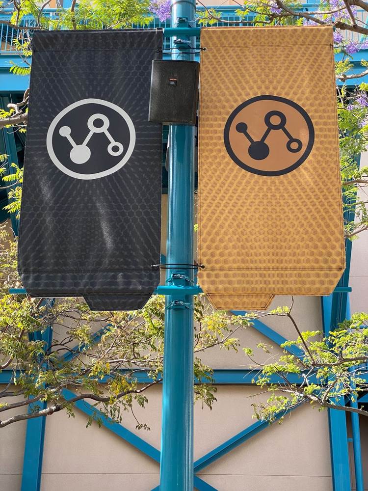 First off, the Pym Technologies logo can be found on banners all throughout the area.