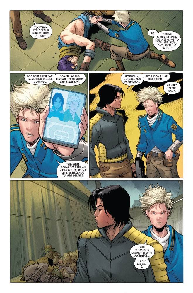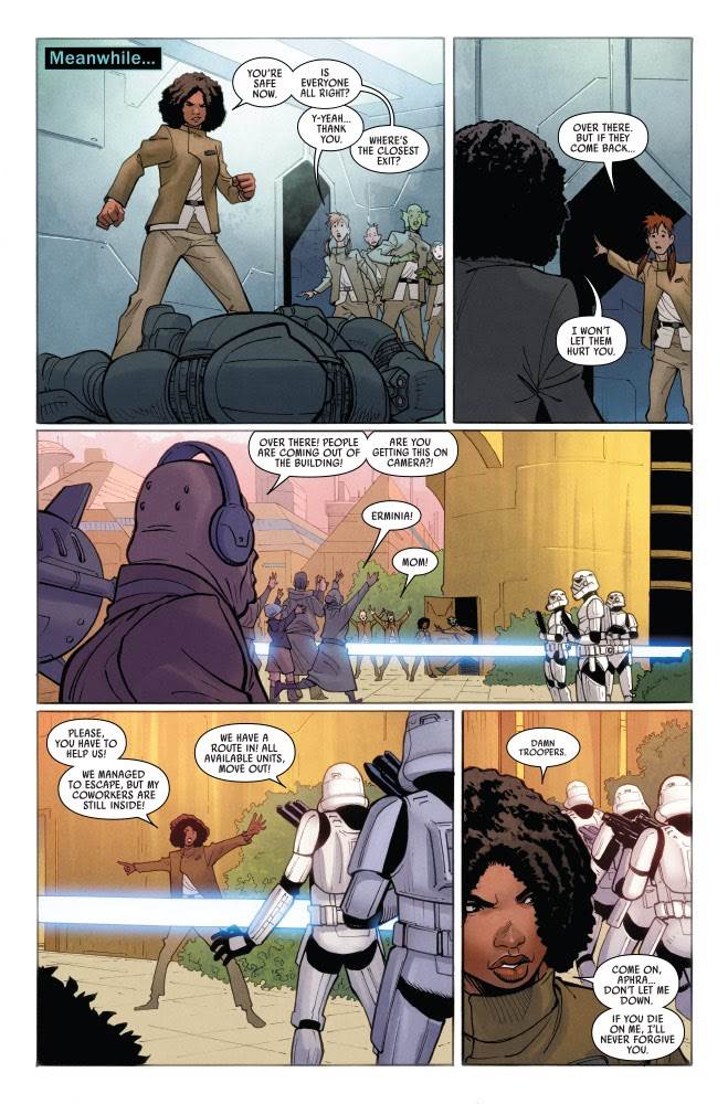 In fact, except for the last panel on the final page of Doctor Aphra #10, I’d say it’s a tad bit misleading to call this a War of the Bounty Hunters Prelude. Instead, it’s mostly about settling the score between Chelli Aphra and her current employer Domina Tagge, which is fine in theory-- I wouldn’t have wanted those narrative threads to have been left dangling-- except for the somewhat disingenuous branding on the issue’s cover.