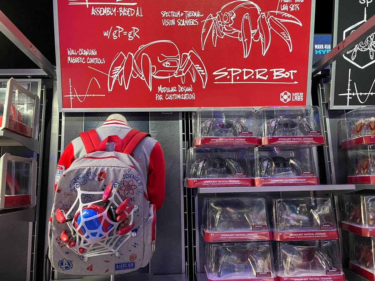 Spider Bots play a key role in the upcoming attraction, WEB SLINGERS: A Spider-Man Adventure, and you can view a prototype design in a display case near the Spider Bots section of the store.