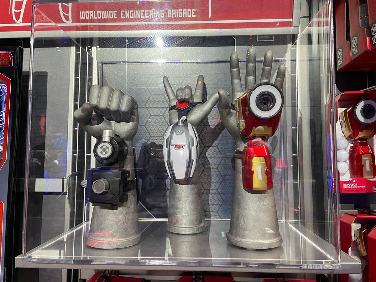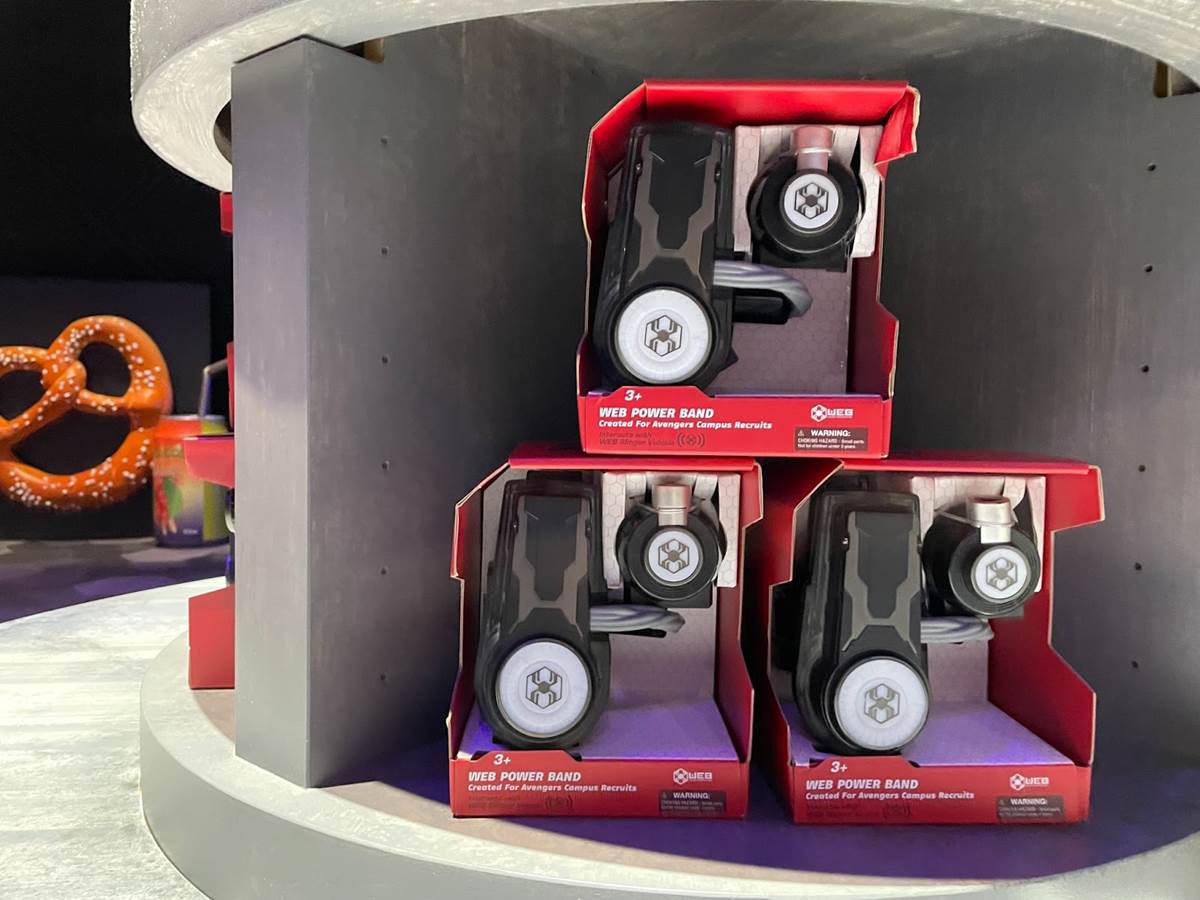 Backed by Stark Enterprises, the WEB Power Band can also attach to repulsors, available in red (Iron Man) and blue (Rescue). They come with 3 “Training spheres,” which can levitate above the repulsor cannon in play mode. On the attraction, it gives riders repulsor blasts instead of shooting spider webs.