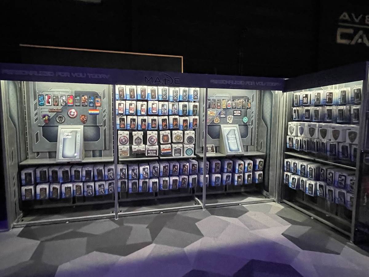 And before you reach the checkout line, check out D-Tech On Demand, with customizable mobile phone cases and magnets from the Marvel Universe (plus Disney, Pixar, Star Wars, and a collection of theme park designs).