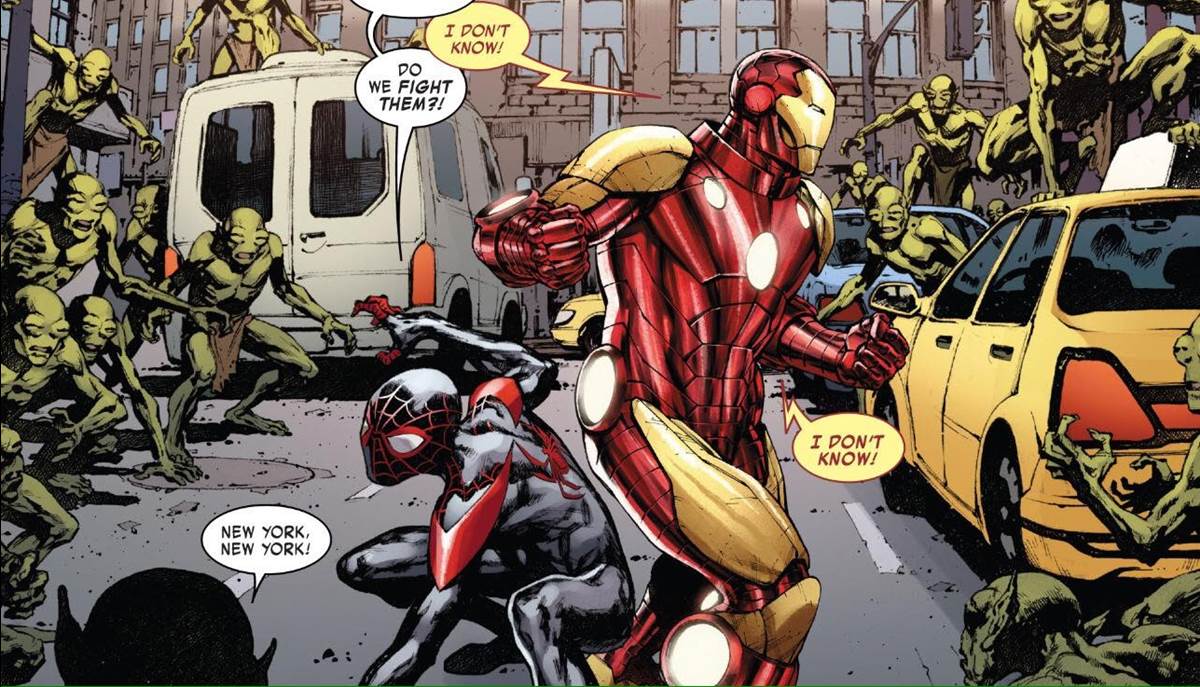 Tony has teamed with a lot of heroes over the years but Miles Morales is not one we’ve seen often. So it’s nice to see this team-up happening early on in this issue. After dealing with the situation at hand, Miles opens up about his recent experience with the villainous Assessor and Tony vows to track him down.