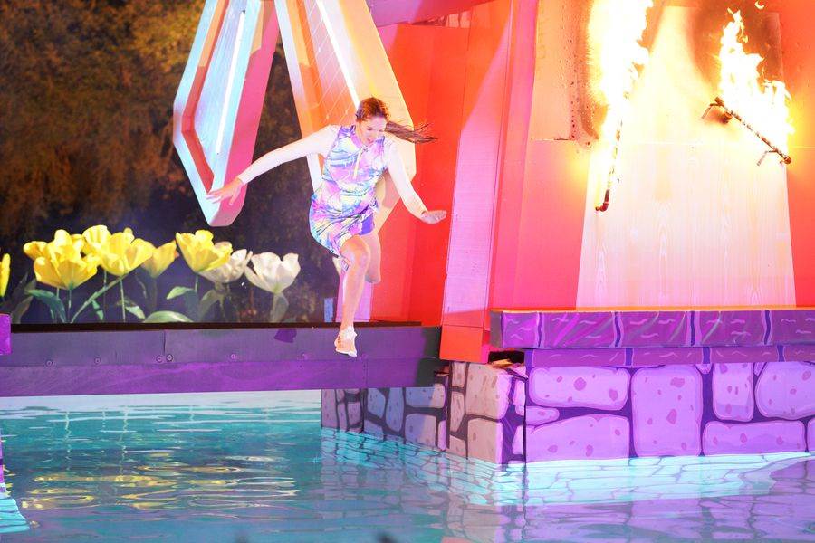 Now in its third season, aptly named Holey Moley 3D in 2D, hosts and commentators Joe Tessitore and Rob Riggle return once again to give us the laugh out loud play by play and color commentary that are the show’s signature as the competitors make their way through tournament play for a chance at $250,000 dollars. Jeannie Mai returns for course-side commentary, and resident golf pro (and exec. Producer) Stephen Curry also comes back (not in animated form like last season) to help handout the coveted green jacket and golden putter to winners of each episode. It should be noted that much like the second season, 8 players begin head to head on individual holes, working their way down until only two players compete for the jacket and putter. We the viewer will not see every hole on the course in a single episode, and each episode offers a different array of the oversized challenges. Last season we saw golfers lit on fire in “Dragon’s Breath,” electrocuted at “Frankenputt’s” lab, and the introduction of Double Dutch Courage, which added additional blades to the windmills of an already challenging hole that was notorious for sending players violently into a row of tulips in the first season, and would now provide the opportunity to send players flying into a pool below.
