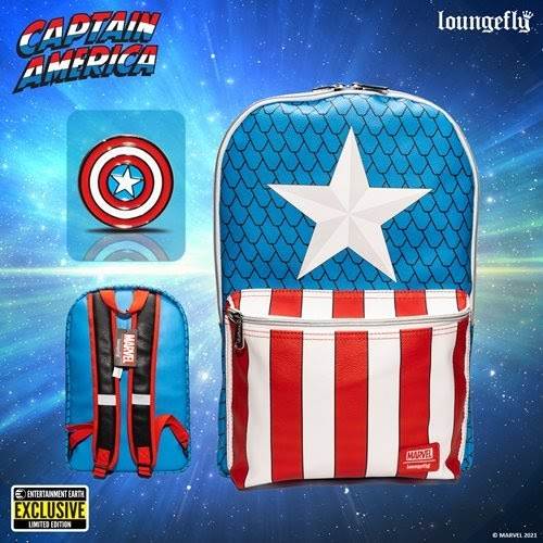 Celebrate 80 Years of Captain America with Entertainment Earth’s Exclusive Loungefly Cosplay Backpack and Pin Set