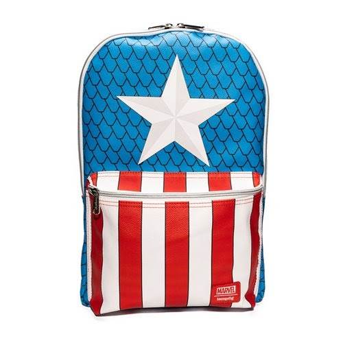 Celebrate 80 years of the ultimate (comic book) symbol of freedom: Captain America! The Sentinel of Liberty has been fighting bullies and bringing hope to our planet and beyond for eight decades and now Entertainment Earth is honoring the hero with a new Loungefly Cosplay Backpack and Pin Set.