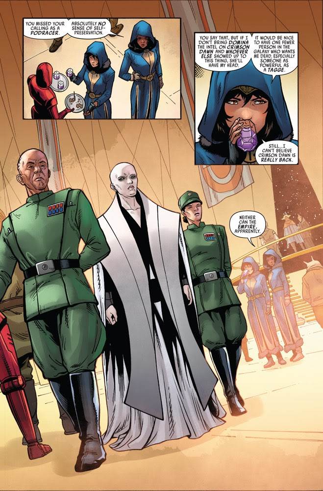 And in Star Wars: Doctor Aphra, volume 2, issue #12-- also out today from Marvel Comics-- we see that same situation play out, ostensibly this time from Chelli and Sana’s perspective, but in execution these scenes end up being a little too similar to what’s depicted in the other title.