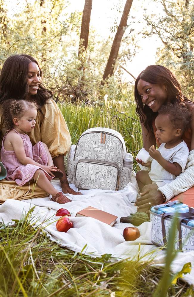 You and your little ones will be the stars of the Hundred Acre Wood with this whimsical collection that celebrates the endless fun of adventures with friends. The cute bags are outfitted in the smiles of everyone’s favorite childhood characters—including Winnie the Pooh, Piglet, Tigger, and Eeyore—while the coordinating pieces come in a picnic-inspired baby blue plaid. Perfect for parents to pack their snacks of choice for adventures with the entire family.