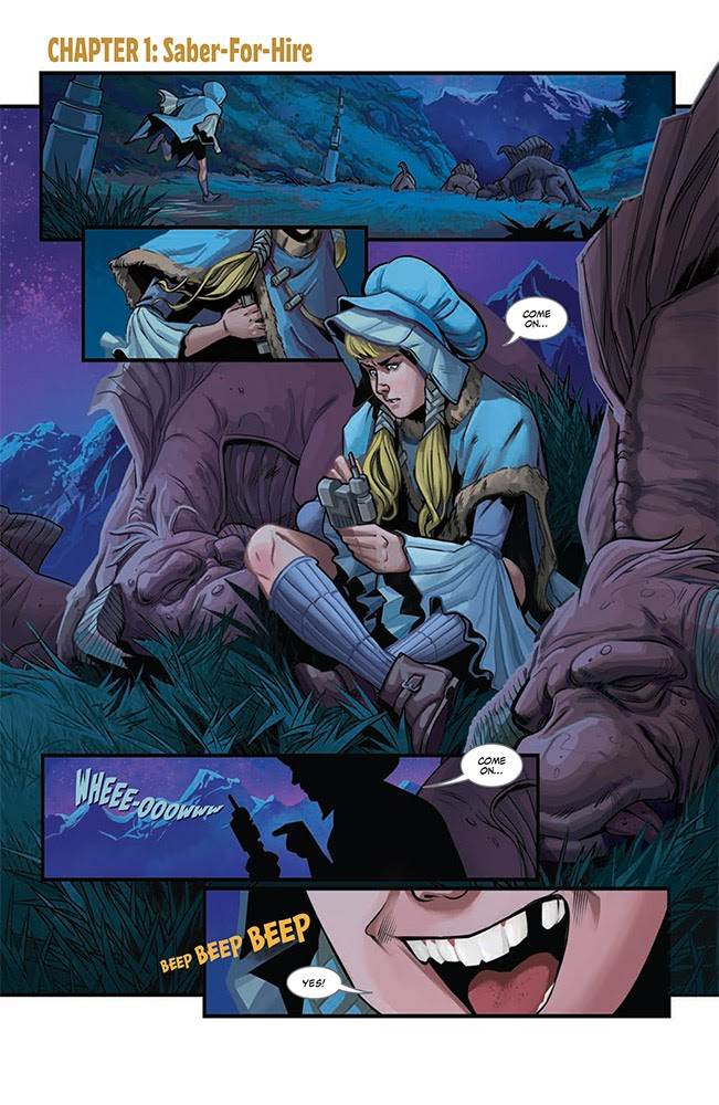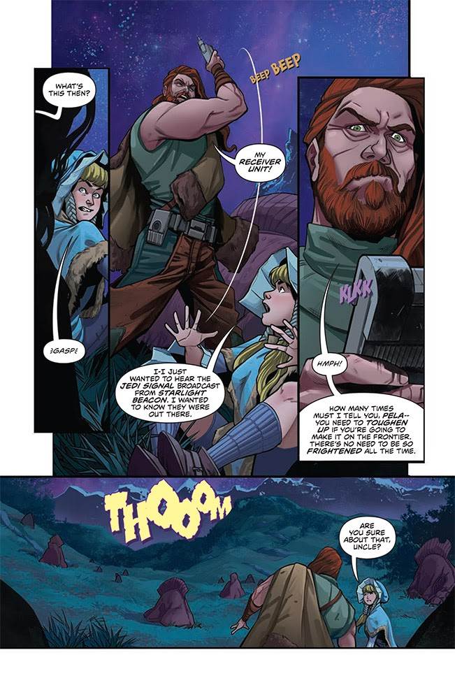 This series, set before the Republic Fair disaster as depicted in The Rising Storm, is already giving us quite a bit more backstory for Ty Yorrick as she lives out her life as a daring monster hunter, taking dangerous jobs for credits around the Outer Rim. On the planet Blarrum, we see her take down a Gundark (the menacing creature Luke Skywalker looked strong enough to pull the ears off of in The Empire Strikes Back), though not quite in the way her employer had requested, thanks to a gawking bystander who gets in the way. Having to skip down due to the botched deal-- and not wanting to run into Jedi Knights investigating the underground monster trade-- Yorrick is forced to take a different gig on Loreth, where a nomadic farming community is being terrorized by another fearsome beast called a Gretalax, which has been cutting into the local population, in addition to its livestock. We also get flashbacks to Ty’s youth training to be a Jedi at a temple on Alaris Prime, and it’s hinted that as this particular story goes along we’ll find out just why exactly she ended up leaving the Order.