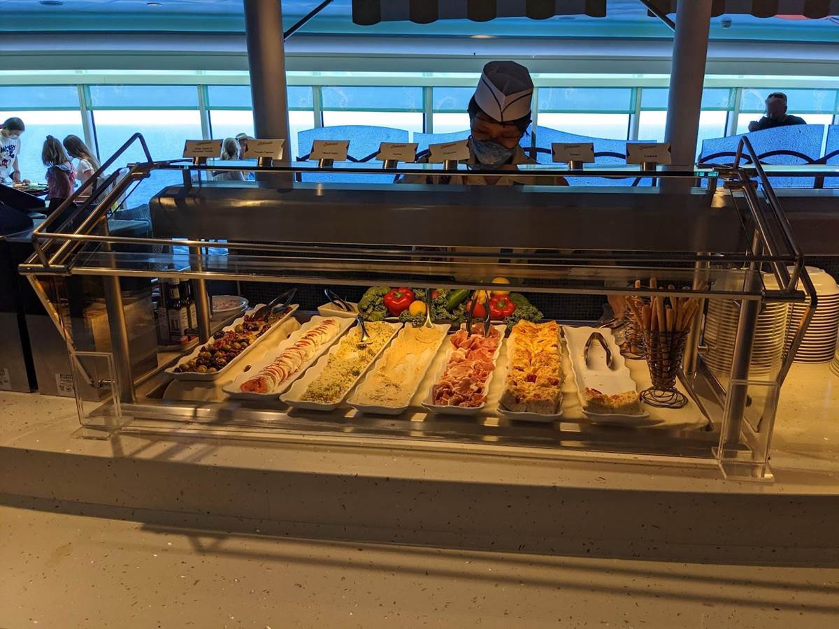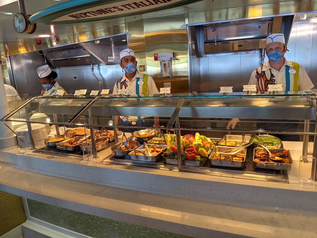 Picked up Gideon from Oceaneer’s for a lunch break. Doobie and I grabbed tasty items from Cabanas. While everything was tasty it did seem that the variety of items was reduced due to the need to provide adequate stations for social distancing. So I’d say there weren’t as many “adventurous” items as I recall from previous cruises but there was plenty to choose from. In addition the quick service venues with burgers, tenders, fries and pizza were open on the top deck as well.
