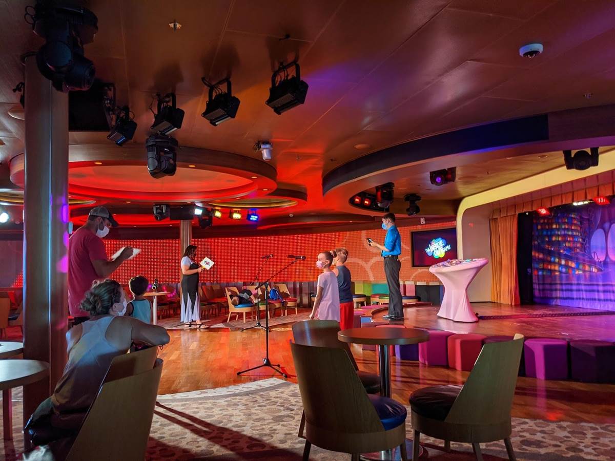 We decided to stop by the Cove Cafe for a late morning beverage and snack. Then it was time for Disney Tune Trivia in the D*Lounge. I’m happy to report we got a perfect score.