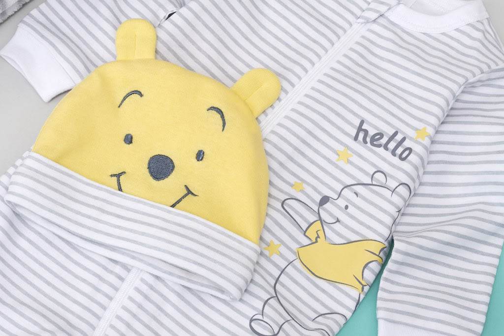 He’s everyone’s favorite silly old bear and we’re quite certain your youngster will love him too! Whether crawling around in search of “hunny” flavored snacks, discovering their toes, or splashing in the bath, Pooh will keep you little one company across a variety of playful looks.