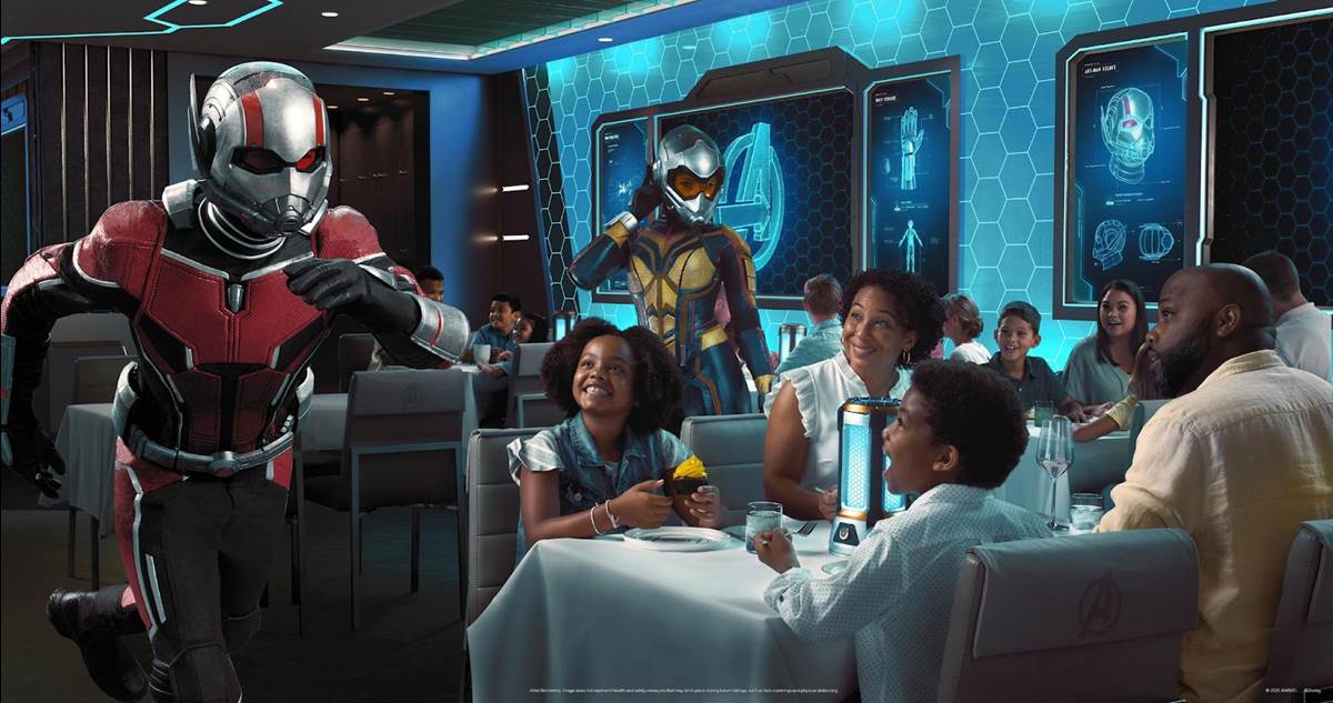 - Cinematic Dining - “Avengers: Quantum Encounter” will follow Ant-Man and The Wasp as they embark on their first public speaking engagement on behalf of the Avengers. Anxious to impress, they are hosting a special presentation of the most powerful Super Hero technologies, such as Captain America’s shield, Iron Man’s arc reactor and Ant-Man’s Pym Particles, giving guests an up-close look at holographic models, field reports and iconic scenes from Marvel movies displayed on the screens surrounding the room. The highlight of this special event is a hands-on demonstration of the latest and greatest Pym Tech, the Quantum Core, which uses cutting-edge — and highly unstable — technology to shrink and grow targets at the push of a button. A few “misfires” result in hilarious Ant-Man-style hijinks, but the real trouble begins when an unexpected villain shows up with a fearsome army in tow, eager to get their hands on this powerful quantum technology. Ant-Man and The Wasp will need all the help they can get to save the day, calling on Captain America, Captain Marvel and the brave diners of the Disney Wish for back-up.