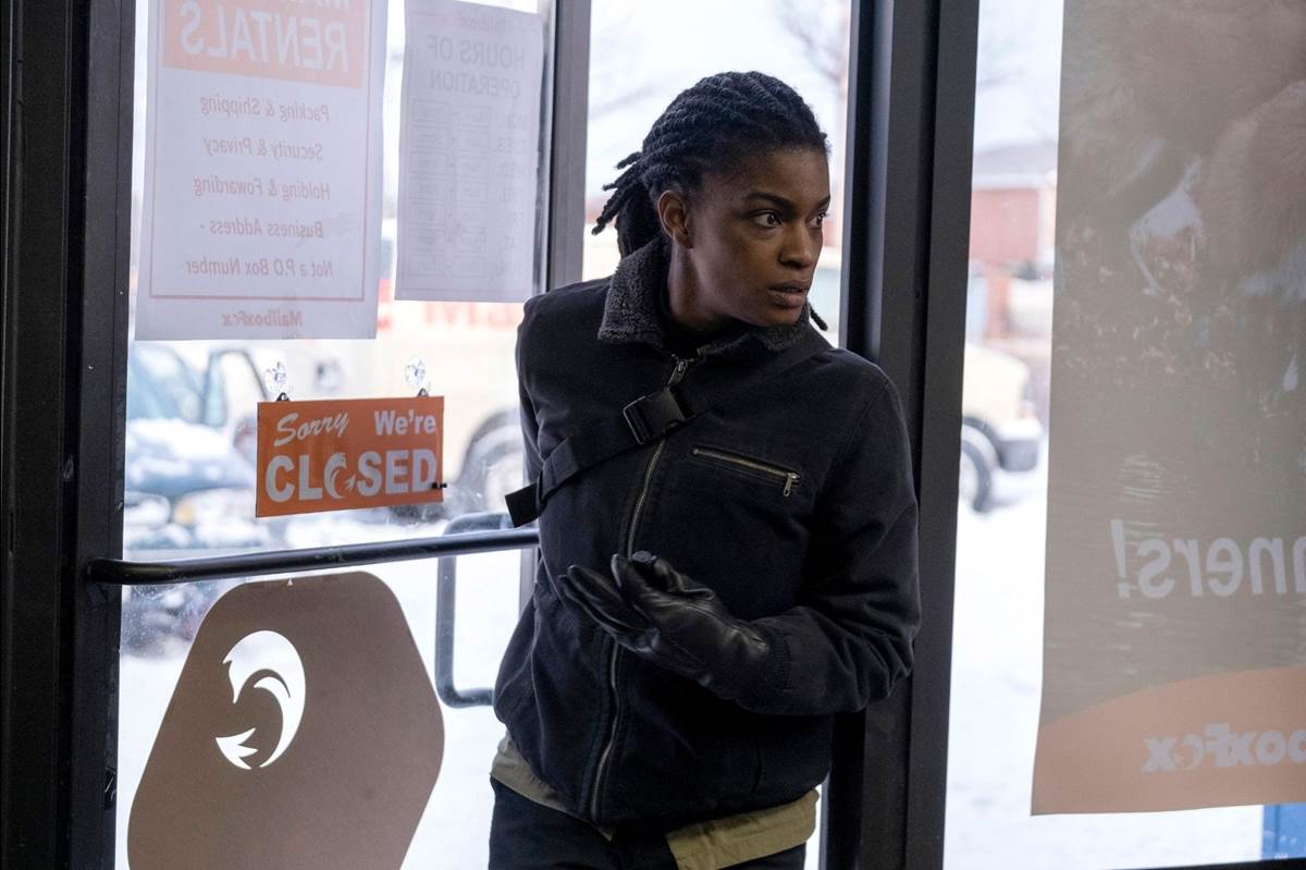 Episode 2 of Y: The Last Man, entitled “Would the World Be Kind,” begins where the premiere episode left off, with Agent 355 guarding Congresswoman Brown after all the men around them have dropped dead. Everyone has now donned gas masks in a panic, and Agent 2355 ducks into a bathroom to catch her breath and activate a secret device hidden in a lipstick tube. We smash cut to a snowy suburban neighborhood and see a caption that says “Day 8” as Agent 355 enters a FedEx shop filled with post-office boxes. After using a key to open a secret door, she goes into the back room and finds more dead men hunched over computer terminals. She moves their bodies to the floor and uses the CB radio to call other stations, but there is no answer. In a storage area, she opens a cardboard box and takes out a series of personal items including a necklace that she puts on and an envelope that reads “NOT YET.” Inside is a piece of paper with an address written on it.