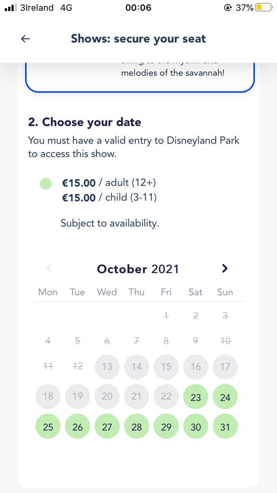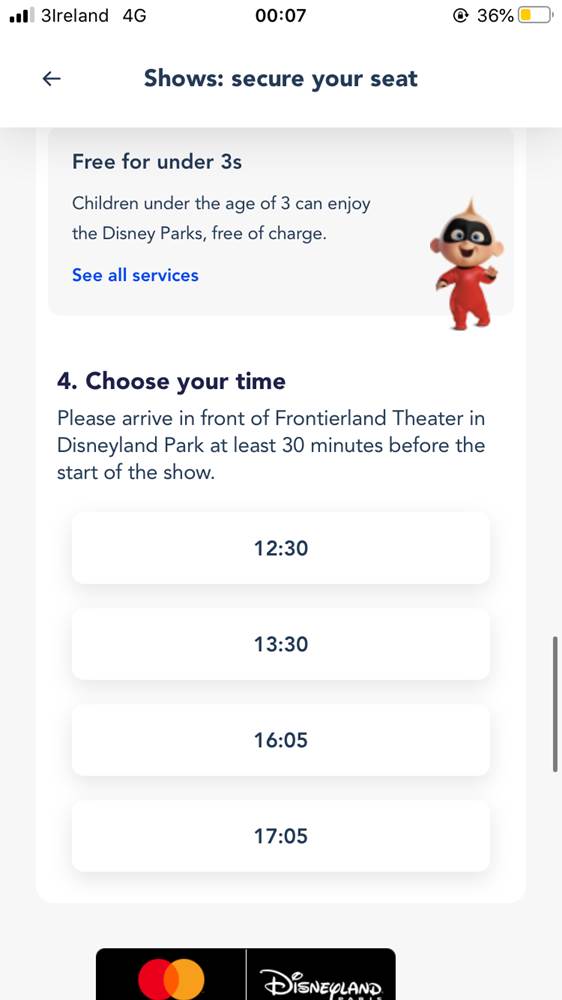A new icon can be found on the Disneyland Paris app homepage to secure your show access. From there, it gives you the option to choose your date, time, party size and finally the payment system - costing €15 per person, with children under 3 going free. The new paid guaranteed access also includes a dedicated line to enter the show, and means you won’t miss out on a particular performance if it fills up.