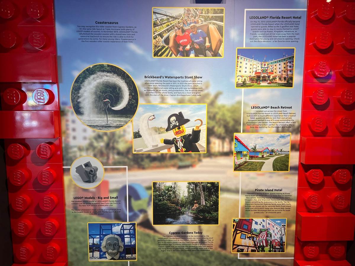 The LEGOLAND Story opened today, which showcases the history of LEGOLAND around the world, in addition to the history of Cypress Gardens, the former park that LEGOLAND Florida replaced, and of course LEGOLAND Florida itself.