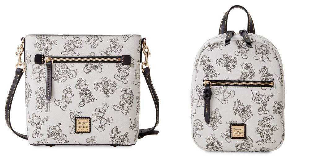 Dooney & Bourke is keeping things simple and classic with their latest Disney release. A new white leather bag accented with black straps and gold hardware spotlights Mickey Mouse throughout a series of sketchbook styles.