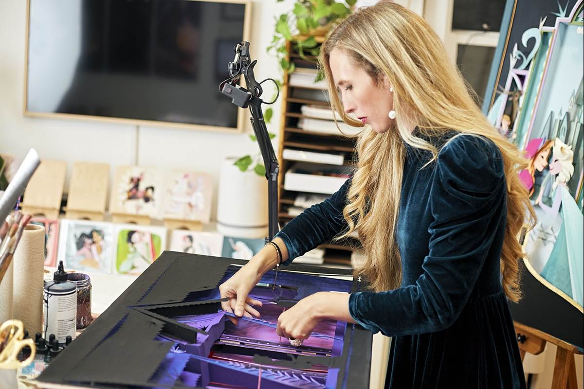 Brittney Lee: It was a complete accident for me. Back before I started at Disney, I was freelancing for a year and working with various companies, but also what I was doing was going to various different trade shows and things like Comic-Con and WonderCon. And living in San Francisco, there's a convention up there called Maker Faire. And so I wanted to do something that was very handcrafted for that show. And I had bought these very fancy decorative glass lanterns and my plan, and I don't know where this plan came from, but my plan was to paint vignettes on the glass of these lanterns so that they would flow. And I started working with that and I hated painting on the glass of lanterns, painting on glass was just not fun at all. So then I thought, "Well, I've got to figure out something to do with these things that I bought, some way to make them interesting." And I don't know if it was Megan [Brain]'s work, there's another artist named Kevin Kidney who works with paper and he's worked with me a bunch before, but I had seen something online somewhere that was paper and I thought, "Oh, okay. I'll try making paper vignettes in these lanterns and that’ll be my fun little experiment." And I didn't end up finishing anything for the show because I didn't know how long paperwork takes to be fully figured out, but I fell in love with working that way, instantly. And so I've been sort of experimenting and trying to update my process and learn things ever since. So a freak accident, really.