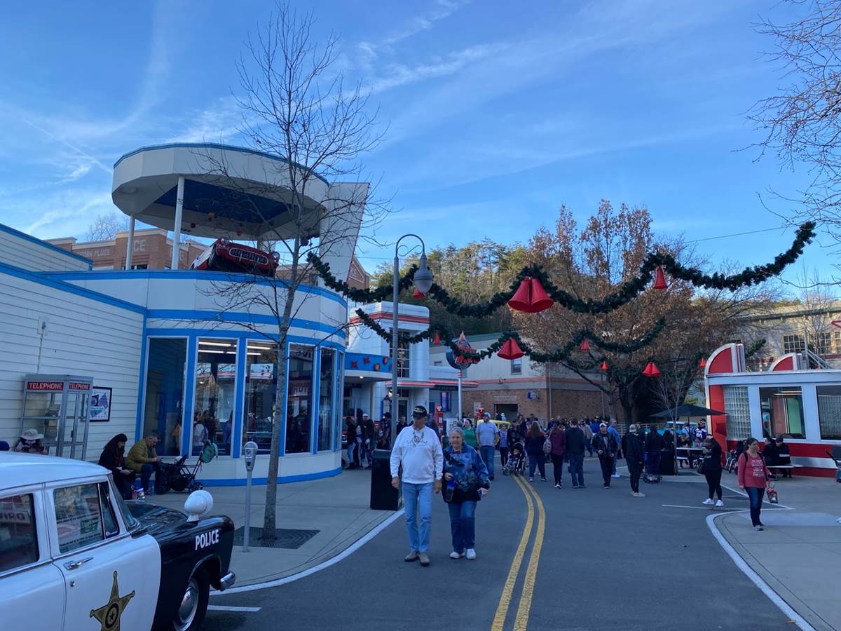 The landmark in the middle of the Smoky Mountains transforms all their legendary entertainment offerings to feature Christmas shows and musical performances, and even includes strolling performers playing classic holiday tunes in the different sections of the park. The many theaters of the park play host to tellings of Twas The Night Before Christmas, as well as the story of Christmas with a living nativity, and the park’s classic Smoky Mountain Christmas Show that plays in the iconic theater at the park’s entrance. Most nights, the park also plays host to a special Christmas fireworks show in the sky above the park’s Wildwood Grove, but can be seen throughout the park. Carolers also sing live on the steps of the park’s historical chapel throughout the night, serenading those passing by, and even offer chairs outside of the chapel so guests can sit and enjoy. The shops of Craftsmen Valley also now feature holiday artisans who create wreaths and wood carvings appropriate for the season.