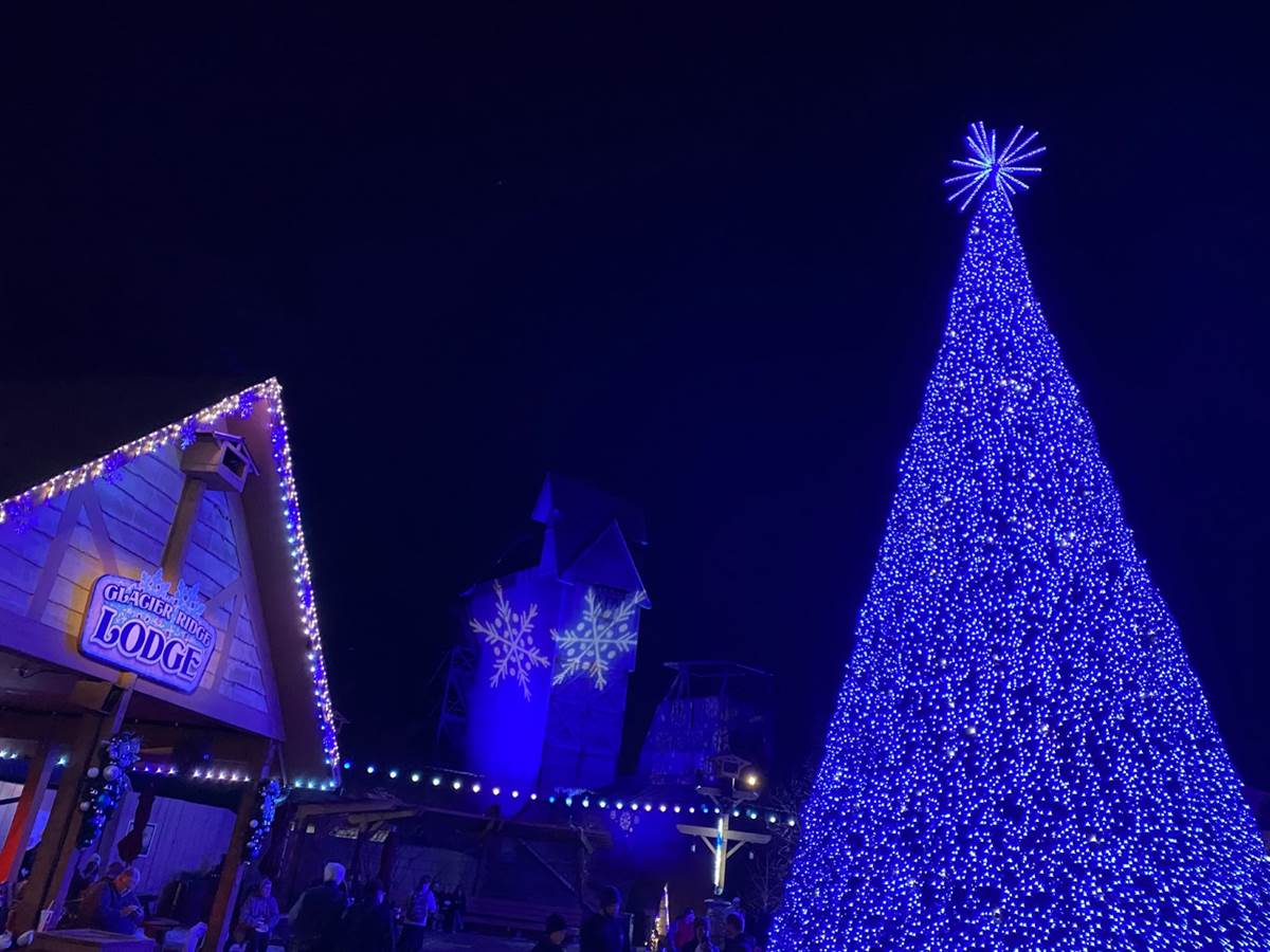 Frequent park goers who know each land will recognize how each land tells a seasonal story through different hues and color schemes. For example, Santa's Village (Country Fair) is home to the classic red and green, the crisp blues and whites of winter can be found in Glacier Ridge (Timber Canyon), and a soft candlelight glow illuminates Craftsman's Valley. Towering up to 12 feet tall, dozens of spectacular Christmas trees are found throughout the park in every area and along many of the pathways.