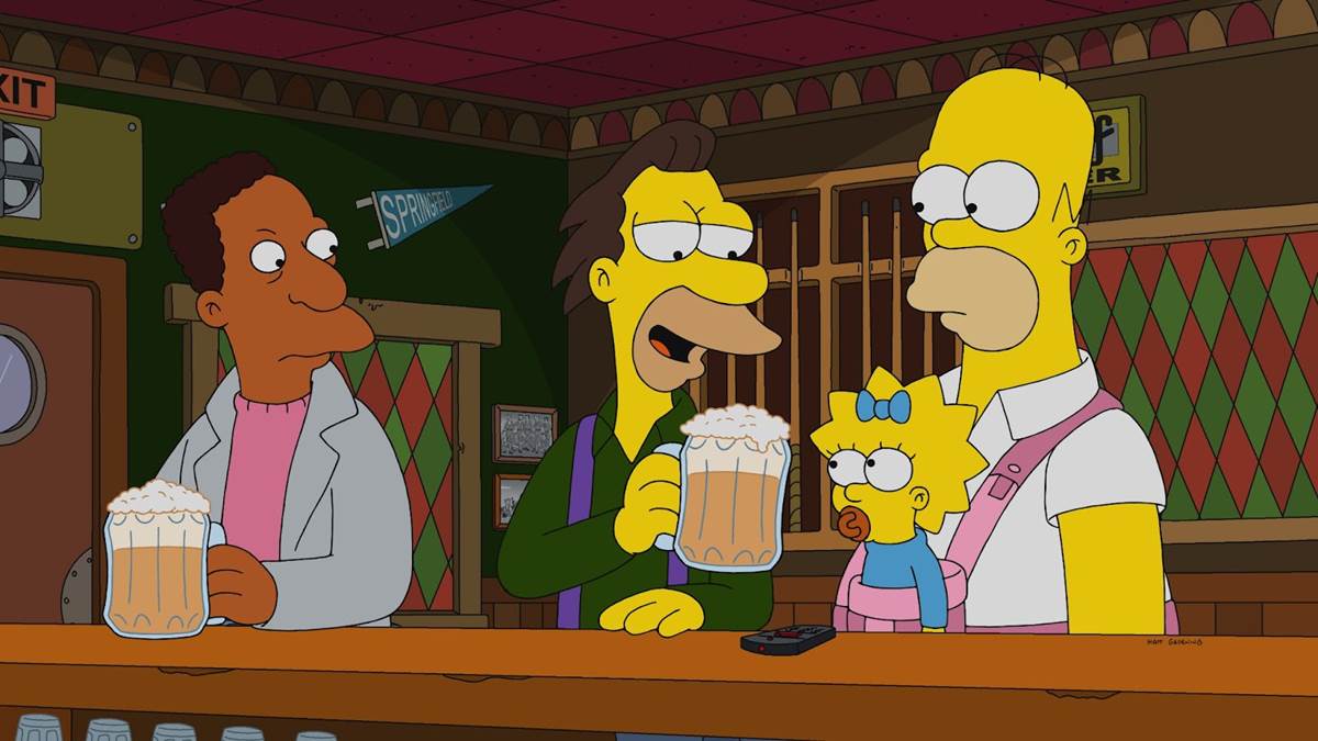 Marge has a dream that the family is in church and a flaming demon hand comes out of the holy water to take Maggie away to hell, where she grows horns and sits on the devil’s lap. “She’ll play in an unsanitary ball pit for all of eternity.” Bart’s in hell too, and he has Milhouse growing on his back, which makes Marge wake up and declare that it’s time to get Maggie baptized, suggesting that either Patty or Selma could be the godmother. “Well, that would insult one of them,” says Homer, “but I want to insult both of them.” Marge says they need to find a godfather who goes to church weekly, and sends Homer out into the world to track one down. Cut to Moe’s Tavern, where Homer turns off the TV and asks around for a godfather, eventually crossing Lenny, Carl, Moe, and Barney off his list. He visits the police station but crosses Chief Wiggum’s name off after he sees what he’s done with his son Ralph.