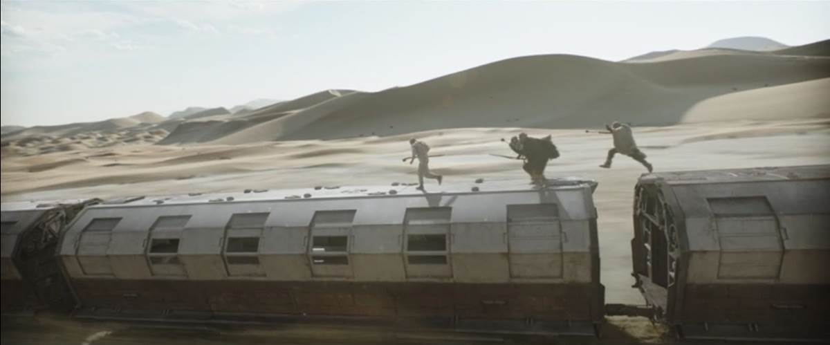 From the mayor’s office, Fett and Shand return to the Sanctuary casino, where they’re informed by Garsa Fwip (Jennifer Beals) that a pair of Hutts known as “The Twins” have arrived in town seeking to lay claim to their deceased cousin Jabba’s throne. A tense showdown in the streets of Mos Espa ends in a standoff, and then Boba returns to the palace for another bacta bath and an extended trip down memory lane for the remainder of the episode. We see the former bounty hunter training in gaffi stick combat, followed by him helping to plan an unabashedly Western-style train heist when a few of his new Tusken friends are picked off by the Pyke syndicate, who are evidently transporting weapons and spice across the Dune Sea without the permission of Tatooine’s native population.