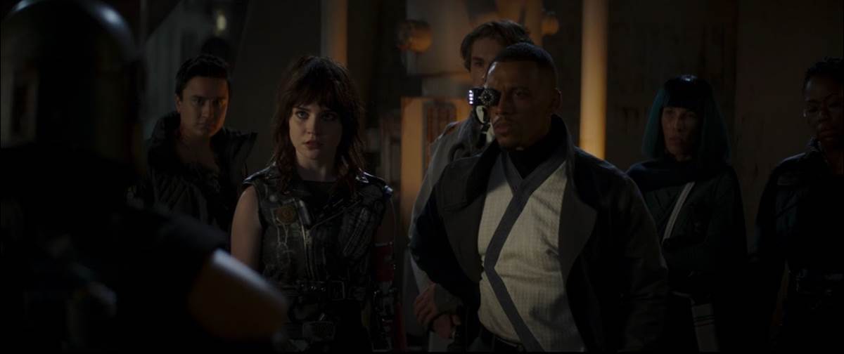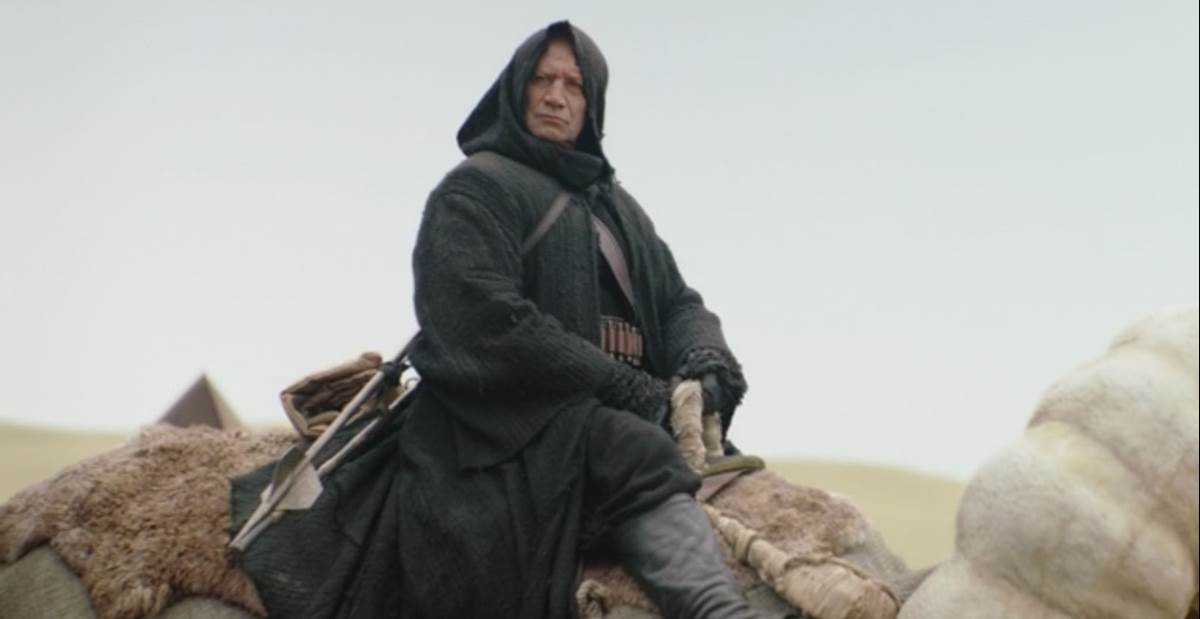 Then it’s flashback time, and in the past Boba Fett heads out to Mos Eisley in an effort to deal with the ongoing threat of the Pyke Syndicate, but returns to camp to find that his Tusken Raider friends have been slaughtered while he was away. Back in the present, our antihero is torn from his bacta pod by the fearsome Wookiee bounty hunter Black Krrsantan (Carey Jones) and a no-holds-barred battle ensues in Jabba’s Palace. Eventually Boba’s hired help comes to his aid and the Wookiee is captured, leading to another confrontation with the Hutts, who surprisingly apologize and tell Fett they’re leaving Tatooine because Mos Espa has been promised to another criminal organization– but not before gifting him with a replacement for the Rancor creature killed by Luke Skywalker in Return of the Jedi. The Rancor apparently comes with a complimentary Danny Trejo as trainer, and Fett declares his intention to learn how to ride the powerful beast before the end of the season.